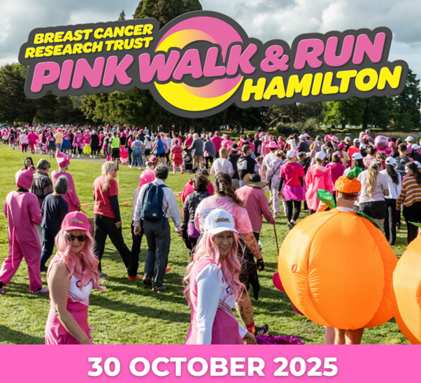 This Breast Cancer Awareness Month, don’t just show up - show what you stand for. Join the Breast Cancer Research Trust’s Pink Walk & Run at Innes Common, Hamilton Lake for a family-friendly event where stories are shared, memories honoured, and hope burns bright. Entertainment from 4.30pm, walk/run (3.8 or 5 km) from 5.45pm. Dress in pink and/or yellow - prizes for best-dressed individual, group and pooch! Go to www.pinkwalk.co.nz to register. Every registration helps fund research that reduces side effects and improves quality of life for those facing breast cancer. So, rally your workmates, grab your whānau, or come solo. However you show up, you’ll be part of something bigger.